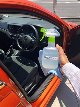 昨今の新型コロナウイルス感染防止に努め、ご利用いただく前と後に、車両の直接触れる部位※(シフトノブ、ハンドル、ドアハンドル(内側)、ドアハンドル(外側)、その他内装)を中心に、除菌作業を実施しております。