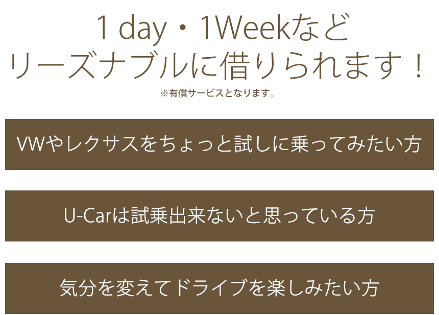 VWやレクサス・・ ちょっと試しに乗ってみたい!