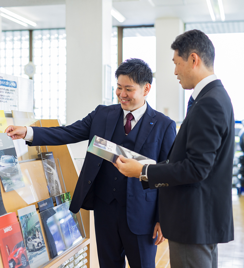 お客様がクルマを買おうと決めるのは何がきっかけになるかわかりません。例えば、10年お取引のないお客様にカレンダーを差し上げに伺ったのがきっかけになって、その方とも息子さんともお取引させていただけるようになりました。だから、お客様とはクルマ以外の会話もたくさんして密にコミュニケーションし続けることを大切にしています。