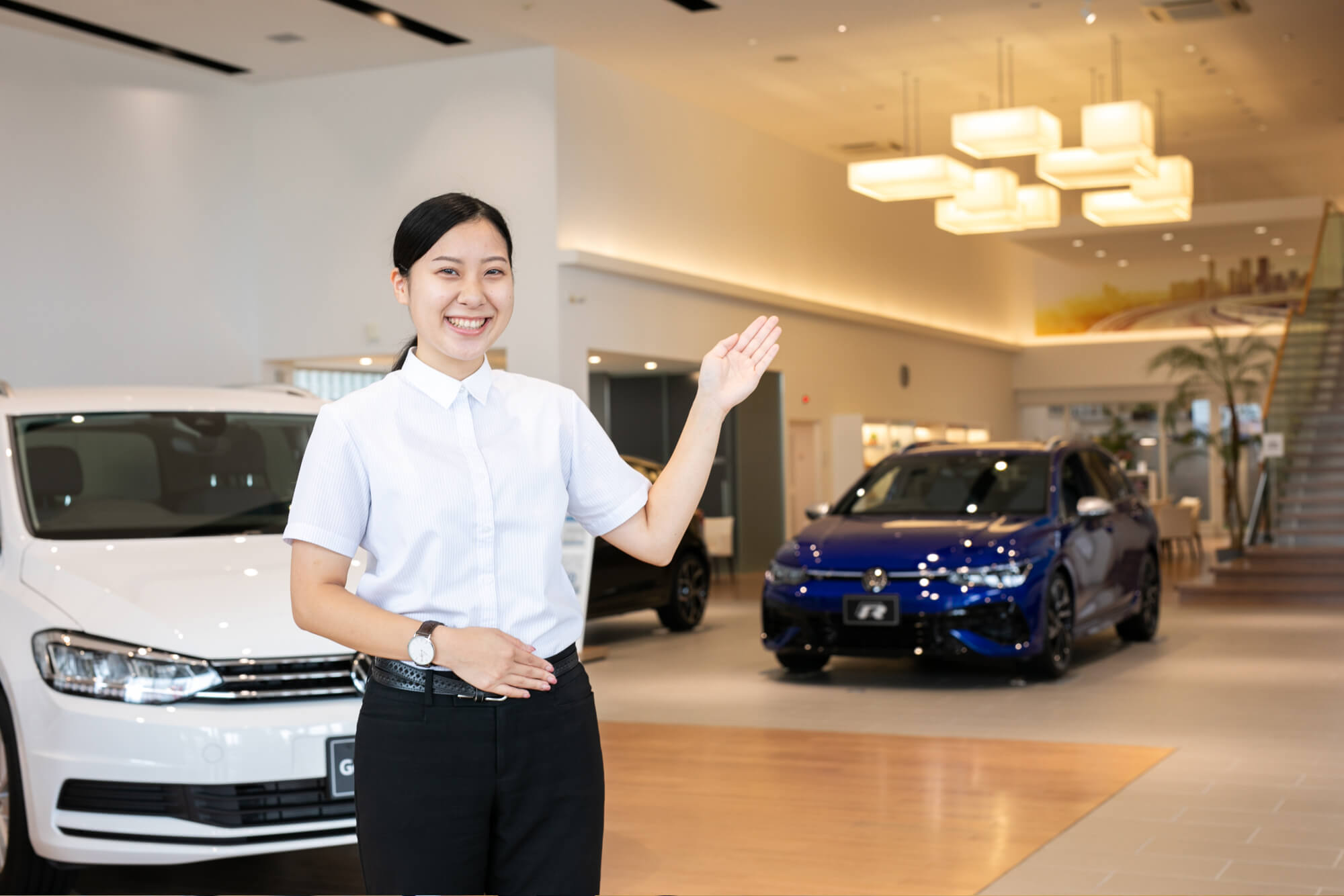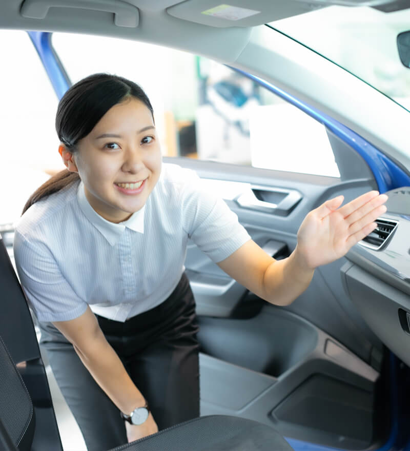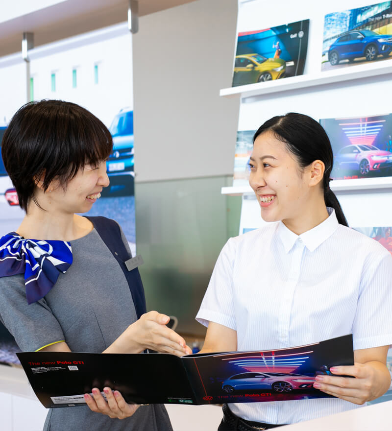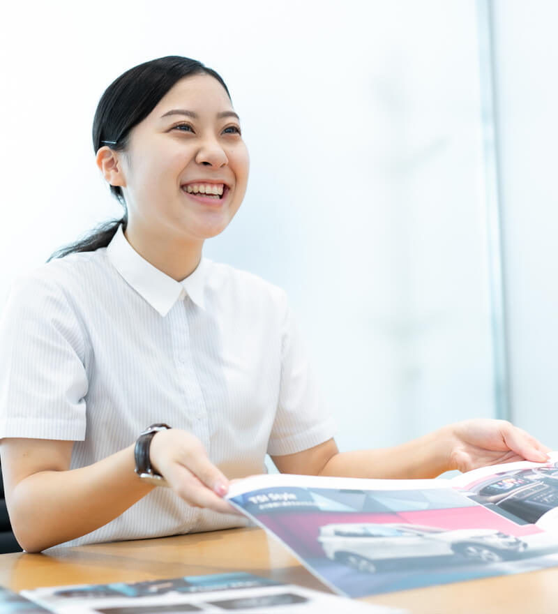 最初に営業の仕事の嬉しさを感じたのは、配属2ヵ月にして初めておクルマをご購入いただけたときのこと。何かわからないことがあるとすぐに先輩や上司に聞いて解決する私を見て、お客様が誠実だと感じてくださったようで、「あなたから購入して良かった」とお声をいただいたことが今も励みになっています。